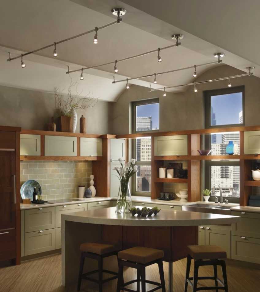 Фьюжн отличается ставкой на оксюморон, т.е. сочетание несочетаемого. Этот яркий и местами даже дерзкий стиль может использоваться и для оформления кухни, где трек-системы станут выразительным финальным штрихом. Попробуйте задействовать белоснежное основание на фоне кремового либо бежевого потолка — эффектно и со вкусом.