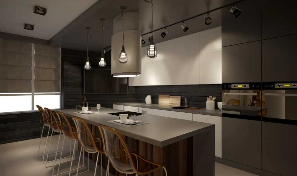 При выборе светильников для освещения кухонных зон необходимо придерживаться единой концепции, чтобы они не конфликтовали друг с другом цветом или размером.