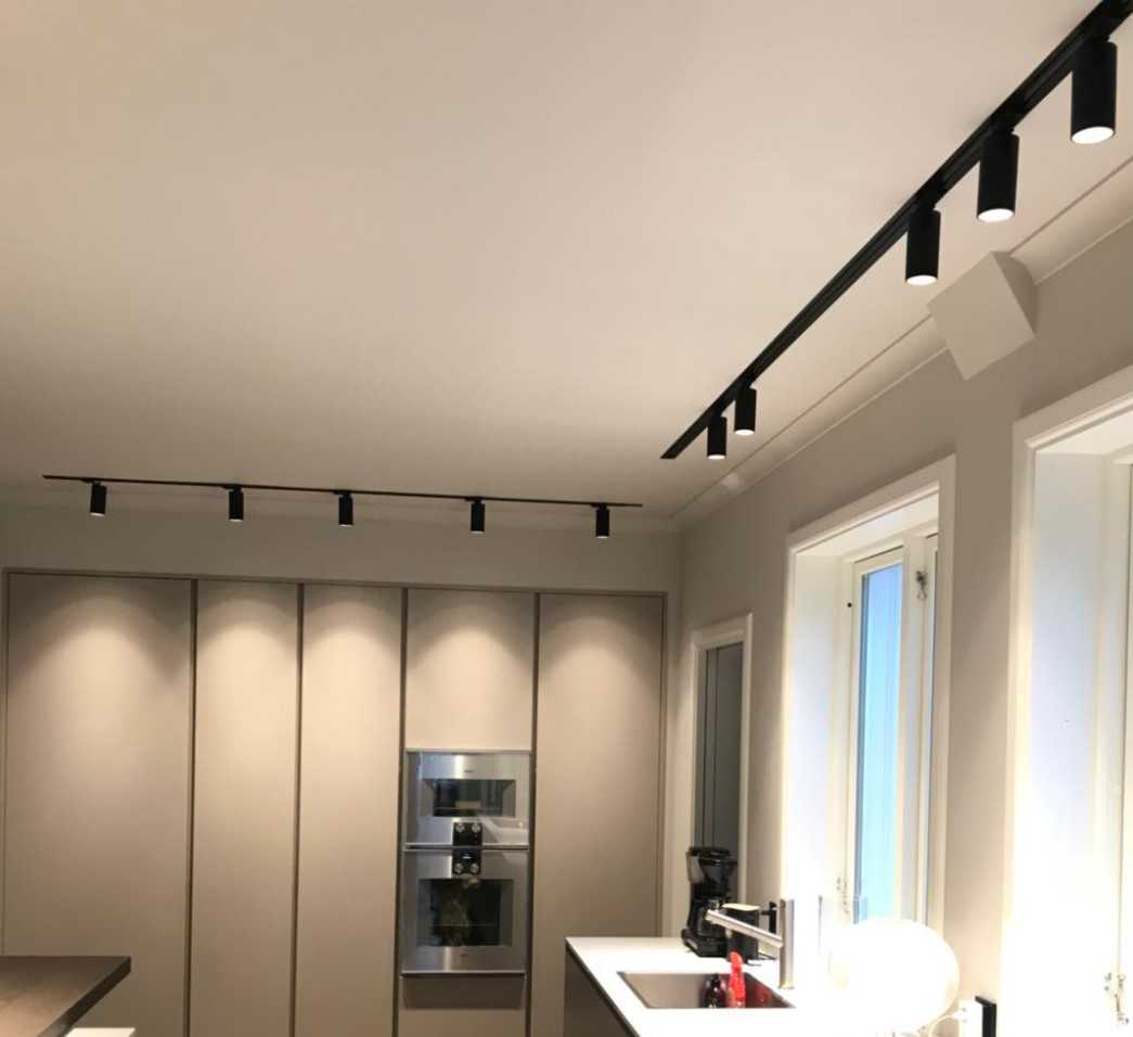 Трековые системы хорошо вписываются в современные интерьерные стили с элементами хай-тека и минимализма. Также они удачно сочетаются с контрастным оформлением в стиле модерн.