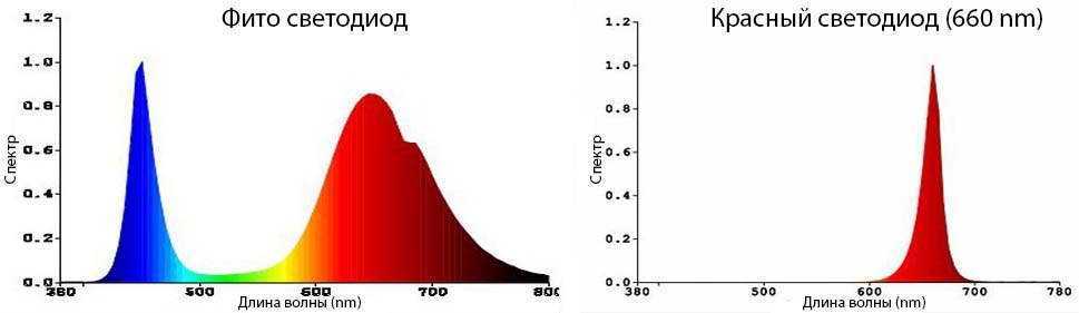 Вышесказанное про отдельные светодиоды разных цветов не имеет отношения к современным фитодиодам, в которых уже применены все необходимые люминофоры и их спектр имеет два максимума в зоне работы фотосинтеза.