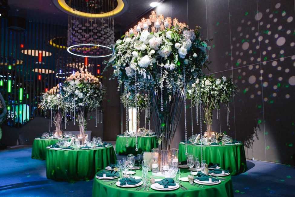 - Высота букетов на столе не должна превышать 25 см, иначе цветы будут загораживать гостям обзор.