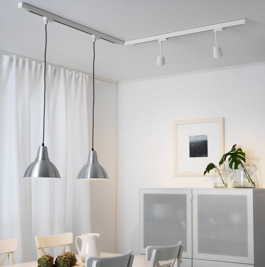- широкая регулируемость — вы можете передвигать светильники по всему треку, направлять световой поток на разные зоны, последовательно добавлять в линию новые элементы, чтобы получить оптимальное освещение на каком-либо участке либо кухне в целом;