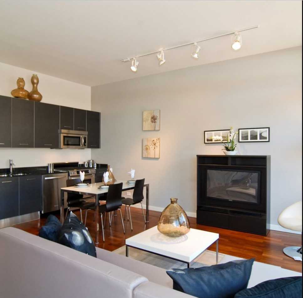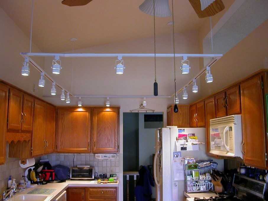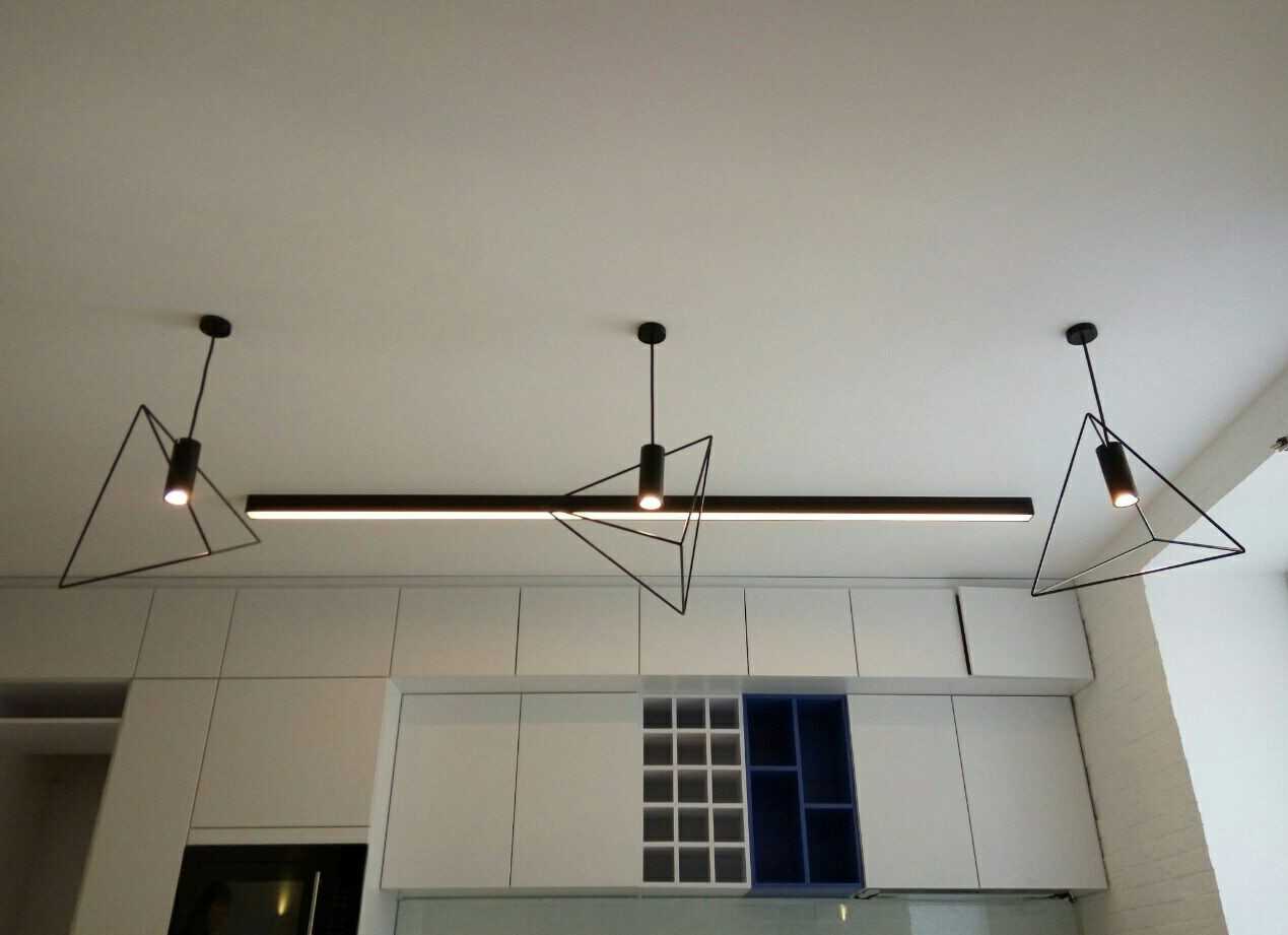Самый распространенный тип размещения — все же линейный. Если это большая кухня, то можно протянуть по всей площади 2-3 трека параллельно друг другу.