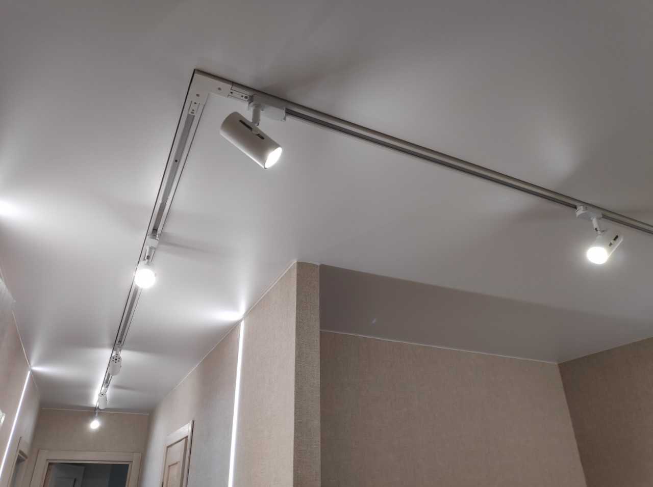 Металлический либо пластиковый профиль с токопроводящей жилой фиксируется на потолке через само ПВХ-полотно с помощью обычных саморезов (метизов). После останется только вставить светильники в адаптер и разместить их на треке сообразно вашему представлению об идеальном световом сценарии. При этом соблюдайте 2 нехитрых правила: