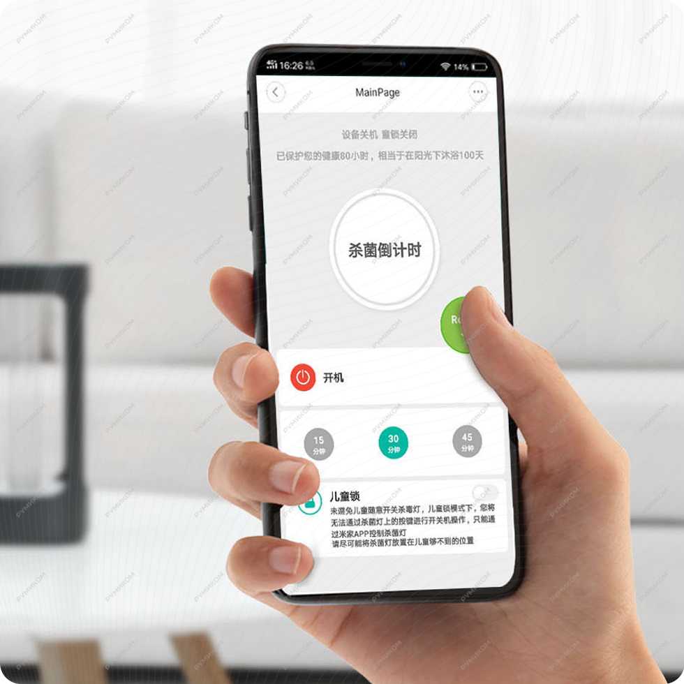 Подключайтесь к интеллектуальному пульту дистанционного управления Mi Home, запускайте процесс стерилизации когда и где вам удобно, взаимодействуйте с экосистемой умный дом от Xiaomi и управляйте лампой с помощью голосового помощника.