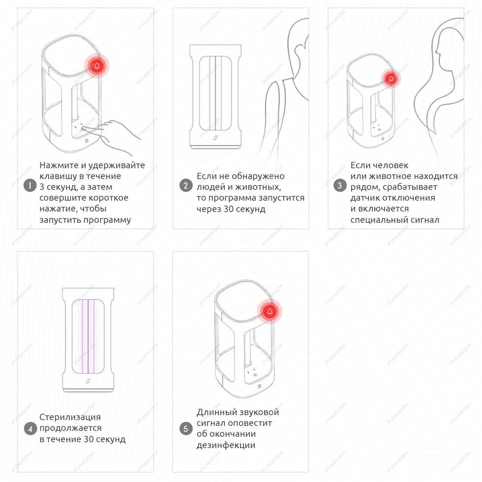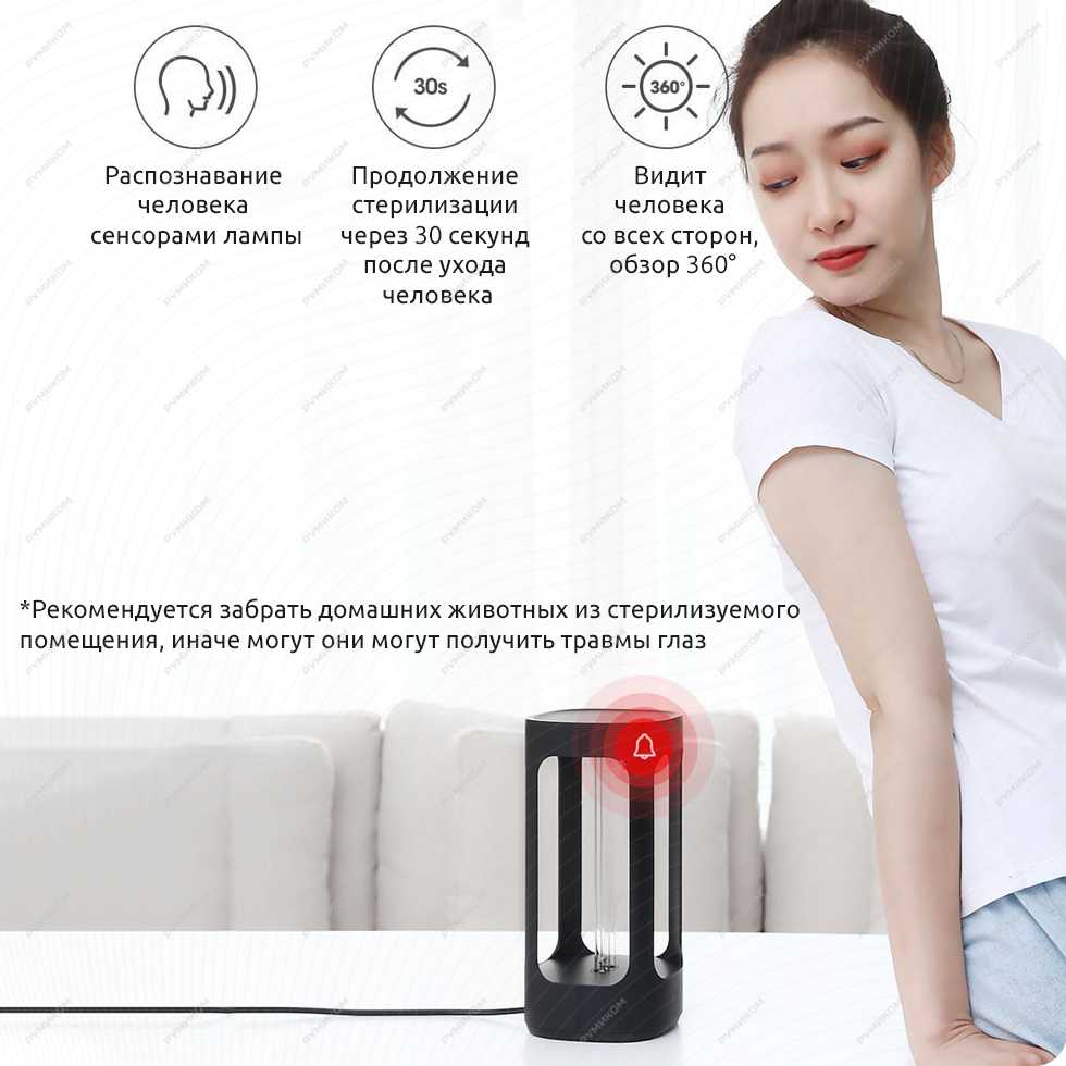 Лампа при помощи датчика обнаруживает приближение человека и останавливает стерилизацию, чтобы не навредить человеку. Спустя 30 секунд после ухода — происходит автоматическое возобновление процесса. В случае сбоя приложение Mi Home вам уведомление о проблеме.