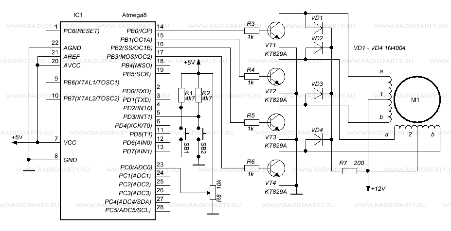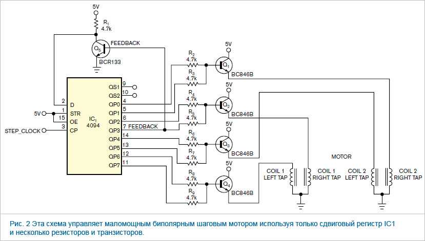 Схема простого драйвера для униполярного шагового двигателя
