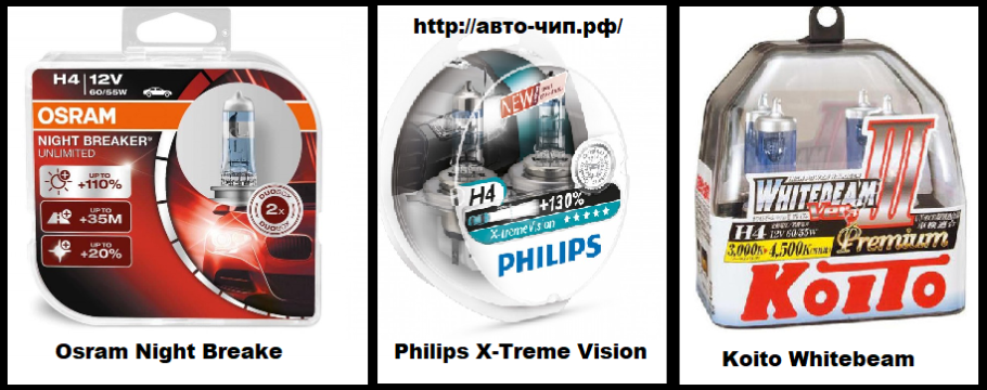 Мы можем порекомендовать лампы в ближний и дальний свет фар таких производителей как: Osram Night Breaker, Philips X-Treme Vision, Koito Whitebeam
