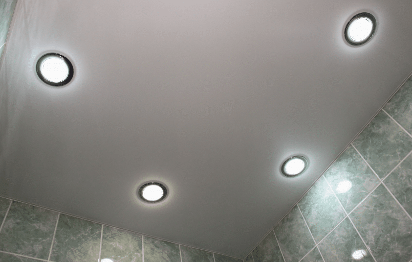Если конструкция натяжного потолка поместилась в ванной и не забрала слишком много потолочного пространства, то можно установить: