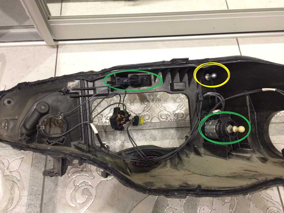 Затем осторожно снять фару с посадочного места, помня о подключенных проводах