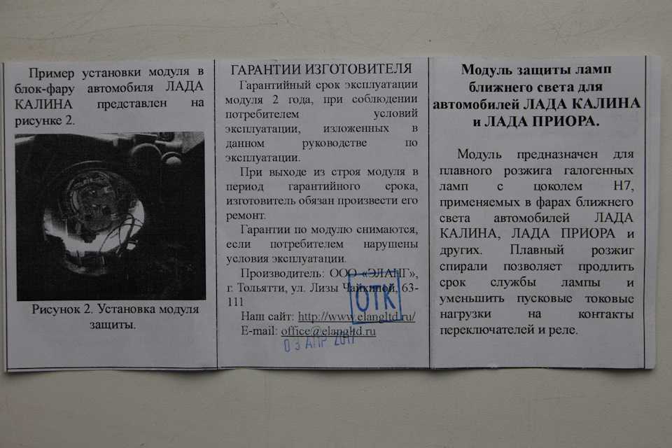 Старые лампы, а с завода были установлены лампы “OSRAM”, на мой взгляд, отслужили отнюдь не плохо.Это, конечно, при условии, что в светлое время у меня горят лампы ДХО, и если-бы ДХО не было, то срок службы ламп ближнего света, был-бы короче.Ну и, конечно, как профессиональному электрику, мне не давала покоя мысль о существовании устройств, продлевающих срок службы галогеновых ламп.Такие устройства мы применяли для галогенных и простых ламп накаливания в “точечных” светильниках. И они не плохо себя зарекомендовали.За счёт плавного розжига(включения), лампочки реже приходилось менять.Такое устройство было придумано и для автомобилей, как раз для ламп с цоколем Н7.Информацию о нём, и какой провод у нас плюс, а какой минус, я впервые прочитал у нашего уважаемого форумчанина Владимира “NANO-MAN”.Очень меня оно заинтересовало.Естественно я его приобрёл.И вот пол-года оно ждало своего часа.Приобретал вот здесь:xn--80agwj1f.xn--p1ai/kat…-lamp-blizhnego-sveta-n7/Стоимость устройства — 540 руб. комплект.