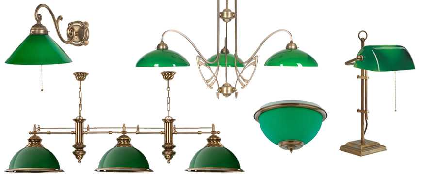 На рынке осветительных приборов можно найти большой выбор светильников с зеленым абажуром.